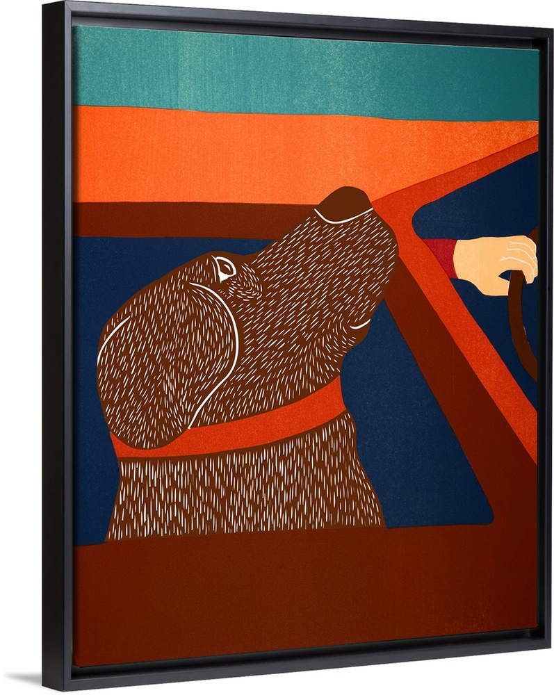 <p>Illustration of a chocolate lab riding in a car with its head out of the window.</p>