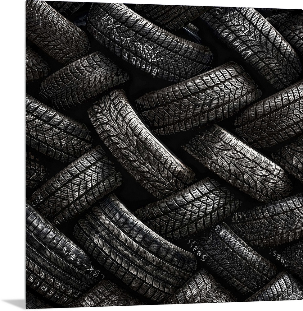 <p>A stack of tires almost resembling intricate braids.</p>
