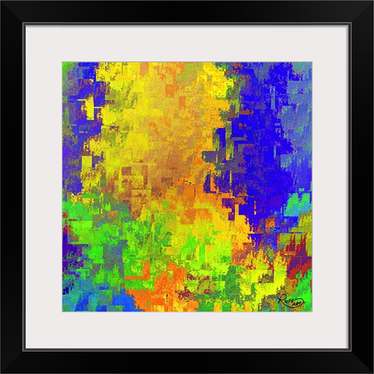 <p>Square abstract art with shapes and textures layered together in all colors of the rainbow</p>