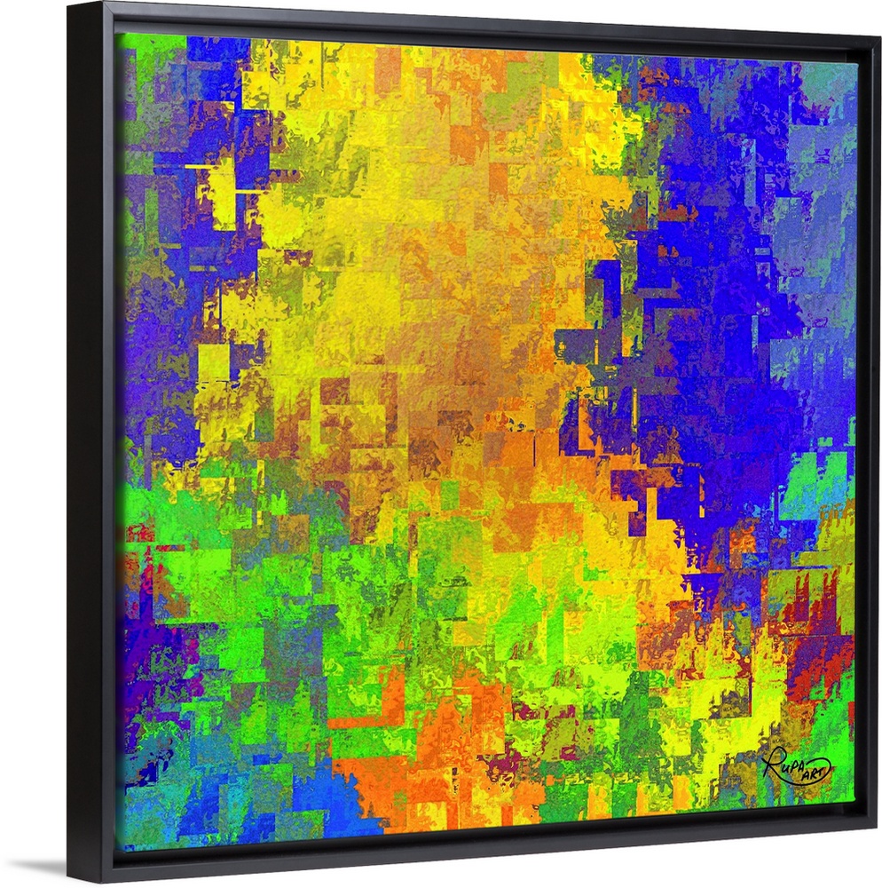 <p>Square abstract art with shapes and textures layered together in all colors of the rainbow</p>