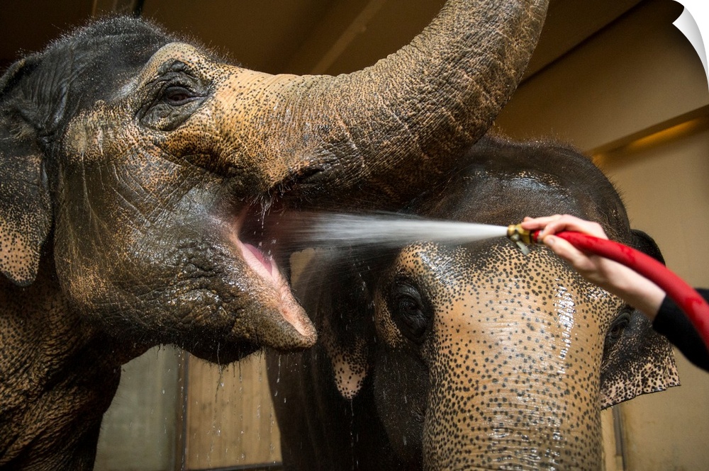 <p>Female Asian elephants break for a drink at the Cincinnati Zoo and Botanical Garden.</p>