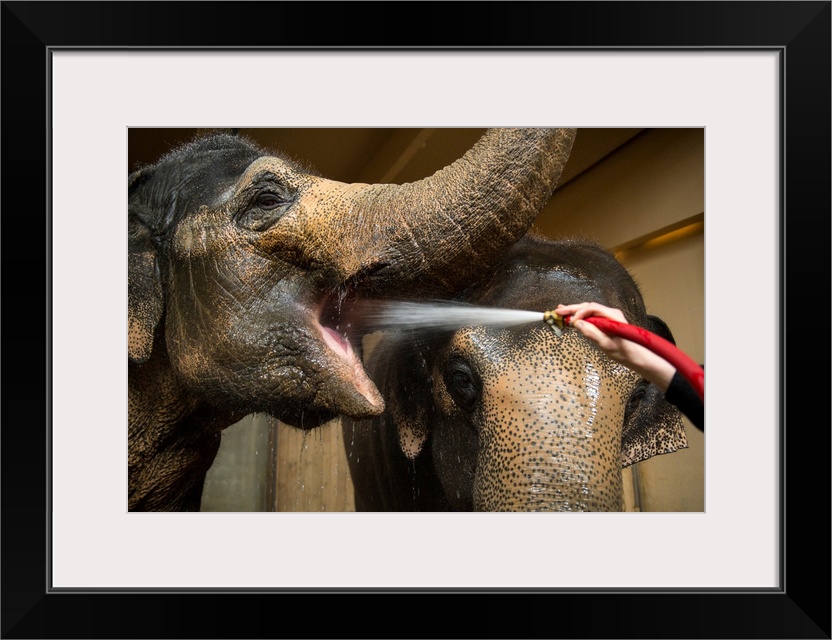 <p>Female Asian elephants break for a drink at the Cincinnati Zoo and Botanical Garden.</p>