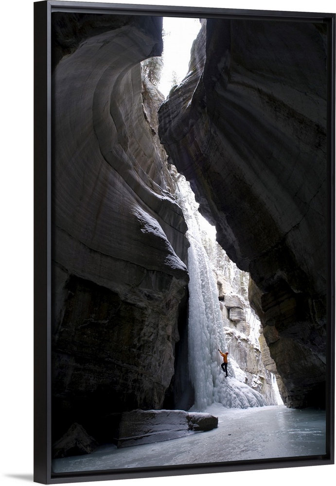 <p>Female Climber Explores Ice Climbing In The Narrows Of Maligne Canyon In Jasper National Park, Alberta, Canada</p>