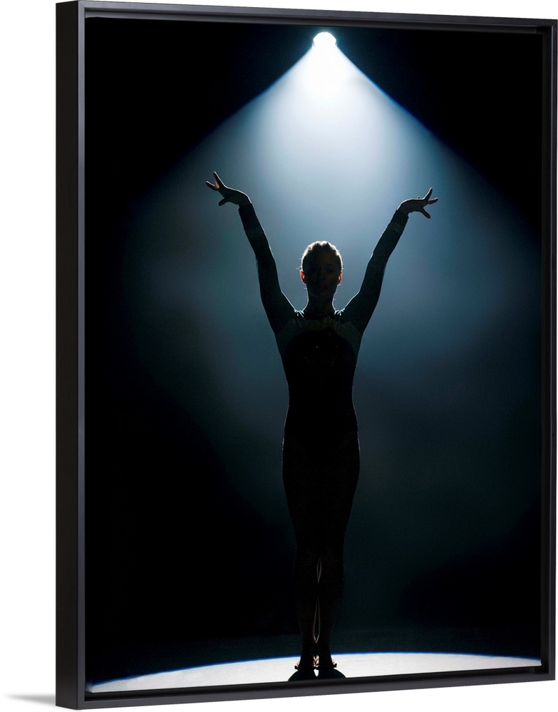 <p>Female gymnast performing in spotlight, studio shot</p>