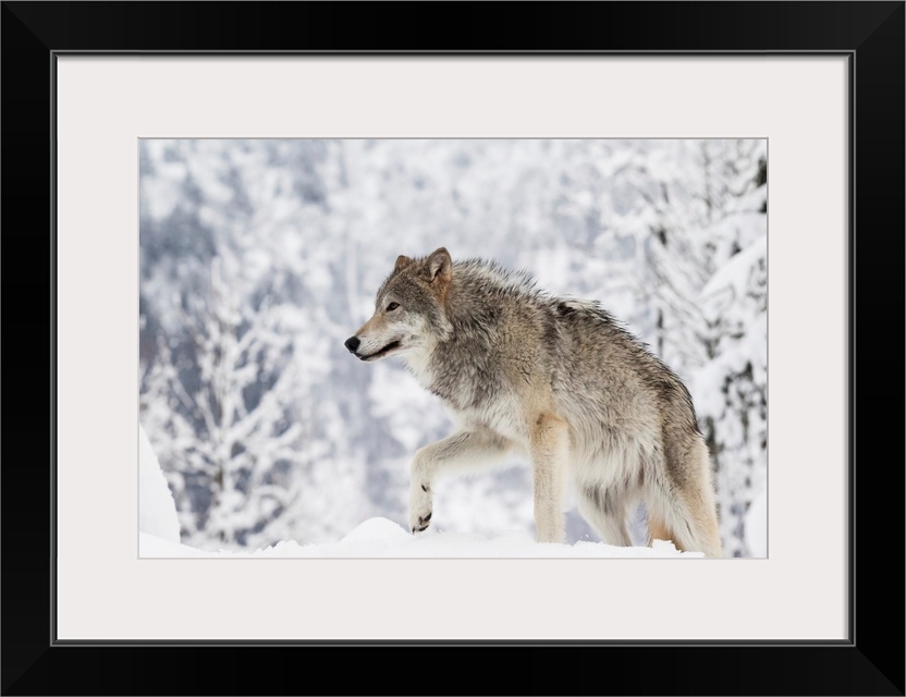 <p>CAPTIVE: Female Tundra Wolf in snow, Alaska Wildlife Conservation Center, Southcentral Alaska</p>