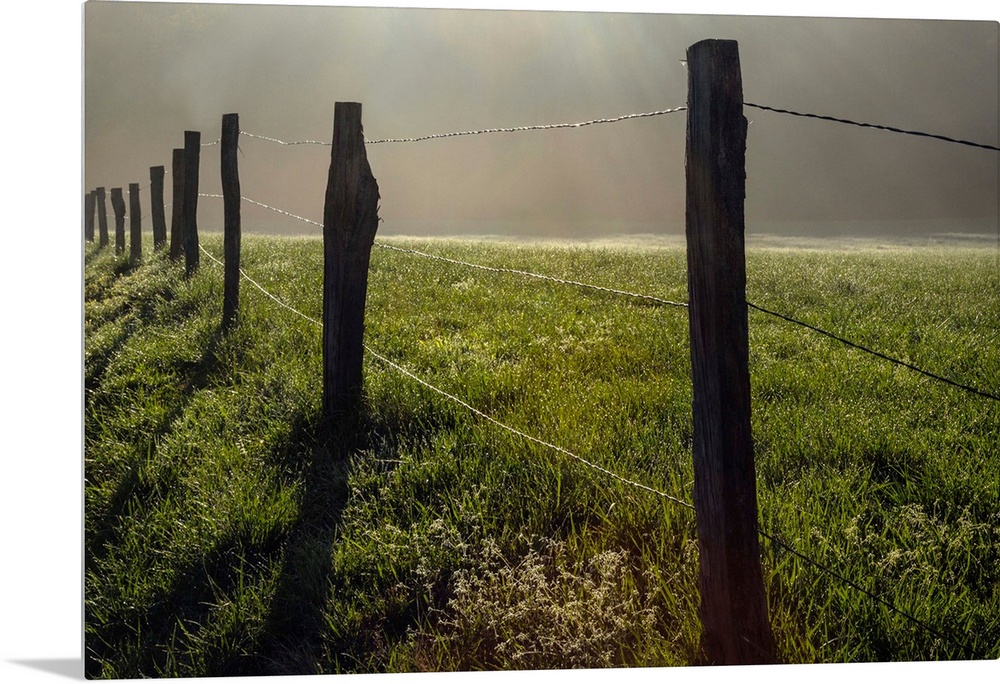 <p>Fence in Cades Cove at sunrise, Great Smoky Mountains National Park, Tennessee</p>