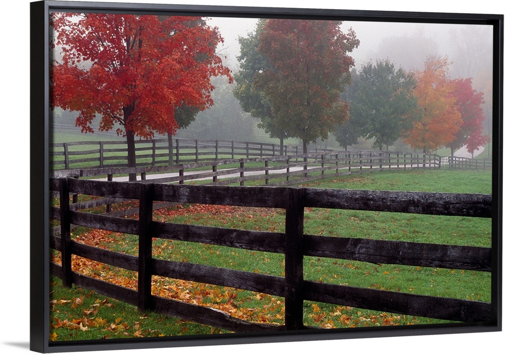 <p>Wall docor of an image of a fence running down a path with bright fall foliage surrounding it.</p>