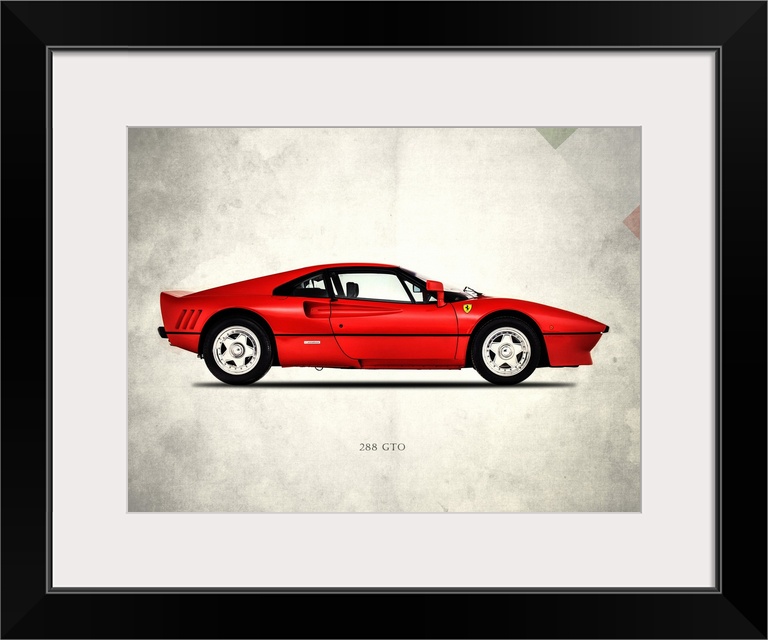 <p>Photograph of a red Ferrari 288 printed on a distressed white and gray background with part of the Italian flag in the top right corner.</p>