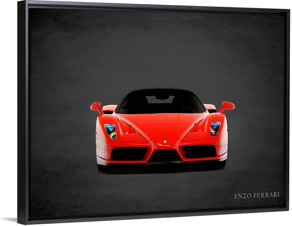 <p>Photograph of a red Ferrari Enzo printed on a black background with a dark vignette.</p>