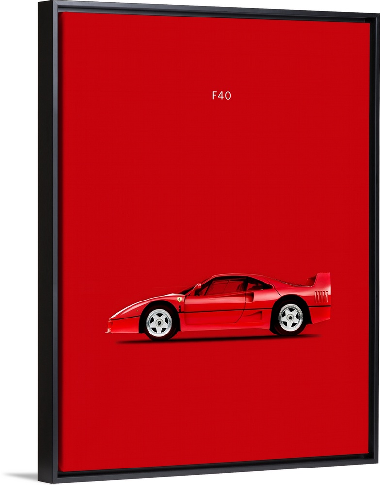<p>Photograph of a bright red Ferrari F40 printed on a red background</p>