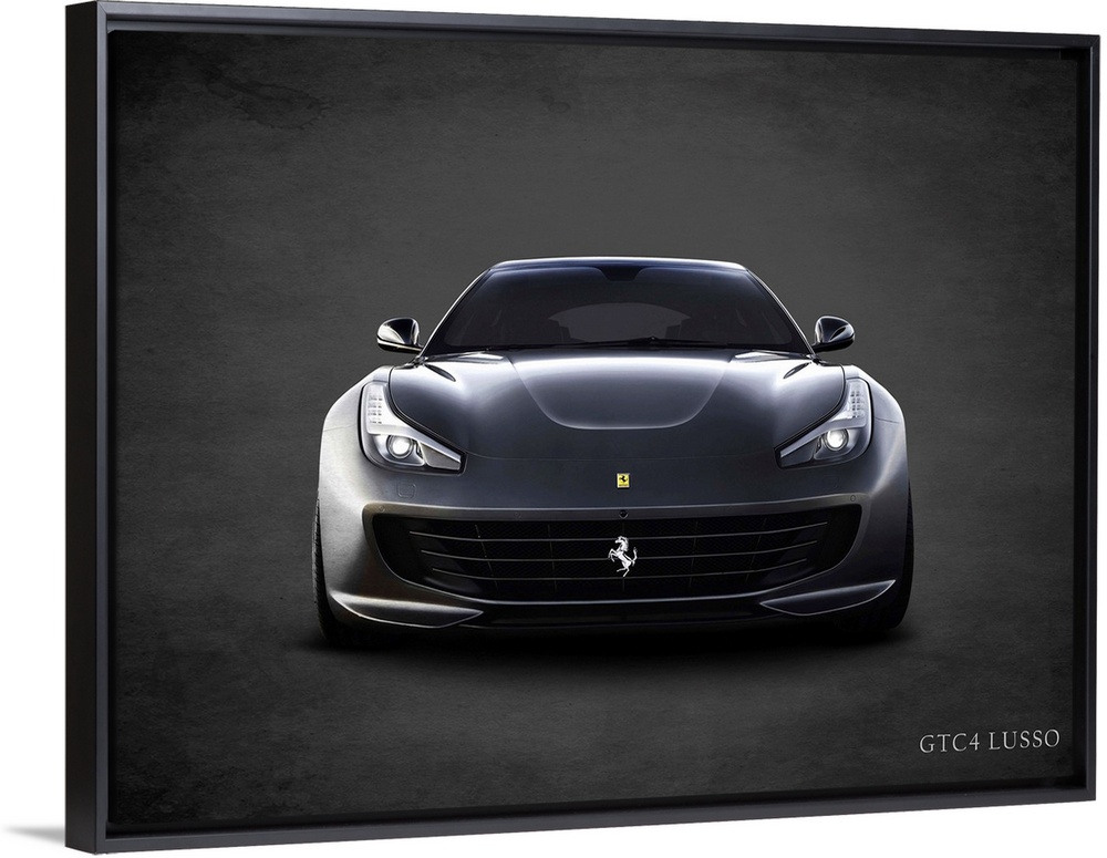 <p>Photograph of a black Ferrari GTC4 Lusso printed on a black background with a dark vignette.</p>
