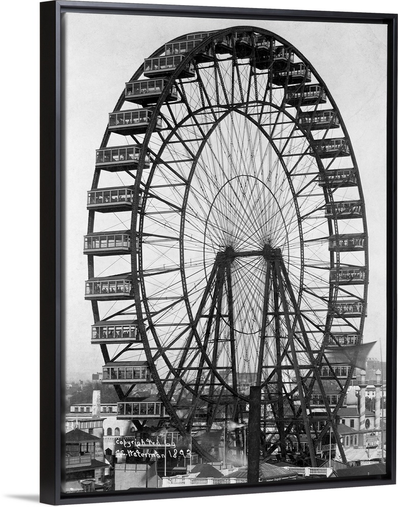 <p>The ferris wheel turns on the World's Columbian Exposition fairgrounds in 1893. Chicago, Illinois, USA.</p>