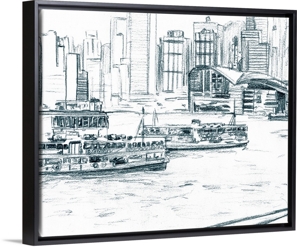 Art Cityscapes Decorative Art Drawing Grey Wall Art Harbor River, Creek and Stream Transportation Boat Melissa Wang