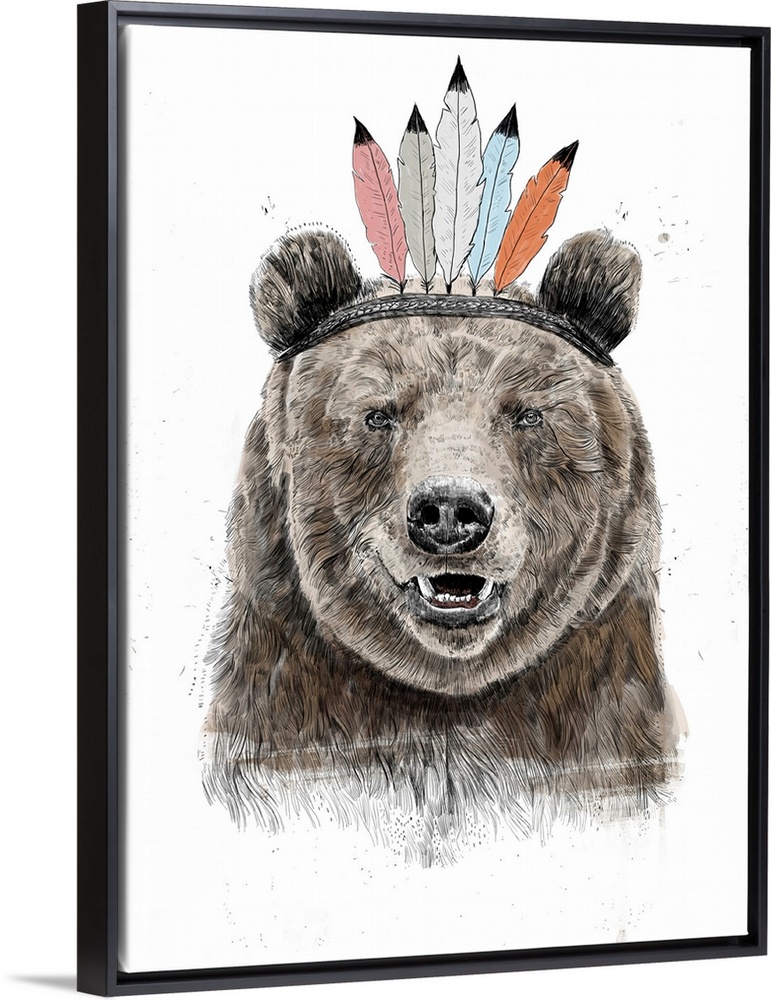 <p>Digital illustration of a bear wearing a feathered headdress.</p>