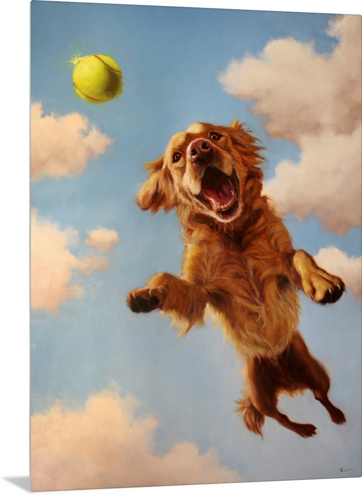 Art Blue Wall Art Contemporary Art Lucia Heffernan Painting Sports Tennis Wildlife Dog Golden Retriever
