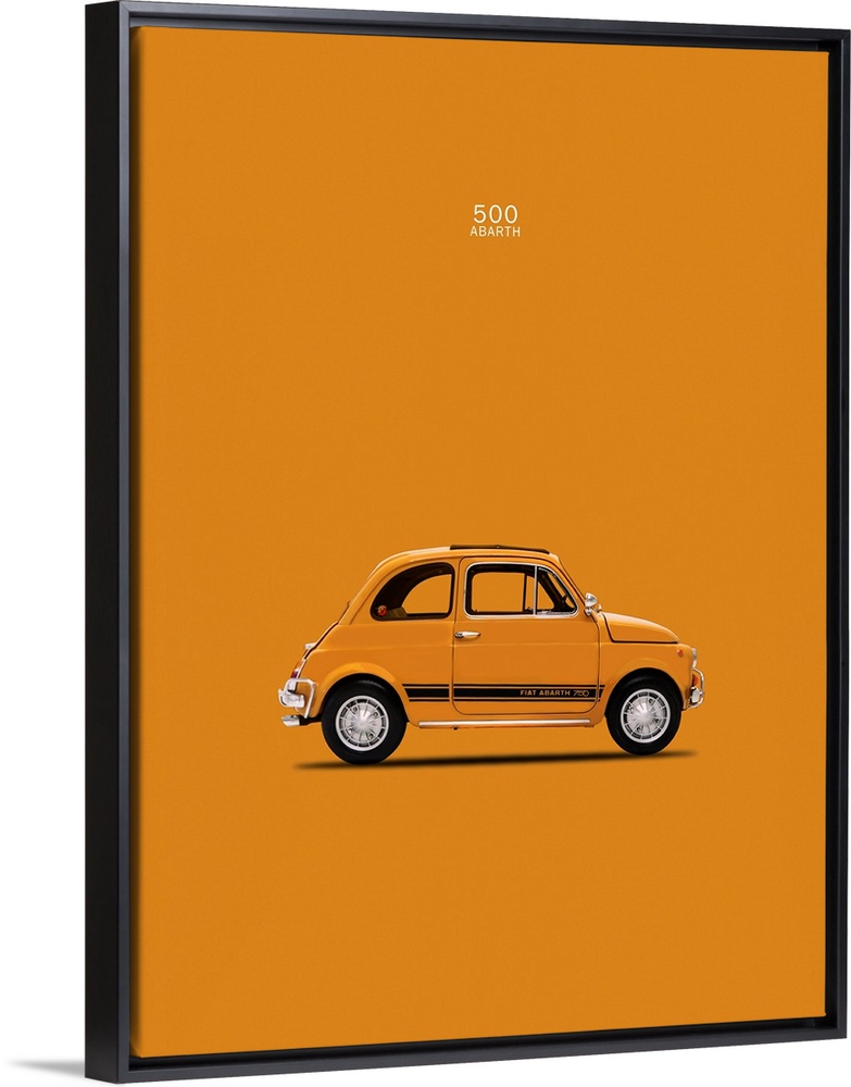 <p>Photograph of an orange Fiat 500 Abarth 1969 printed on an orange background</p>