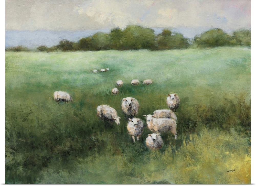 Art Matcha Contemporary Art Green Wall Art Landscapes Countryside Painting Julia Purinton Wildlife Sheep