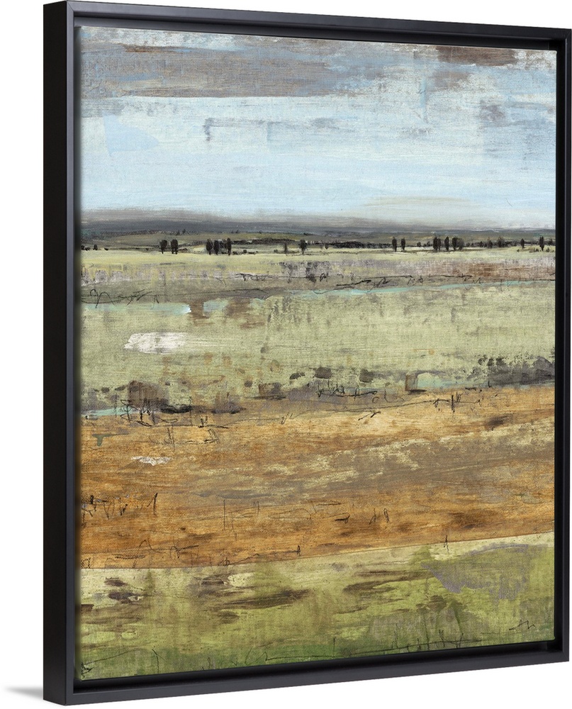 <p>Contemporary painting of an open field under a pale grey sky.</p>