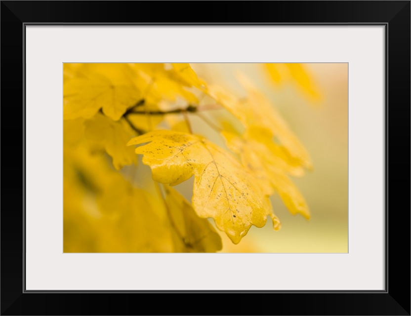 <p>Field Maple leaves displaying their autumn colour in a woodland in the southwest of England.</p>