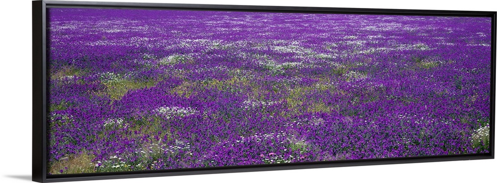 <p>Panoramic photograph on a big wall hanging of a vast field of purple wildflowers in Planicies, Portugal.</p>
