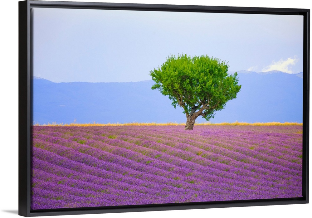 <p>France, Provence, Valensole Plateau. Field of lavender and tree. Credit: Jim Nilsen</p>