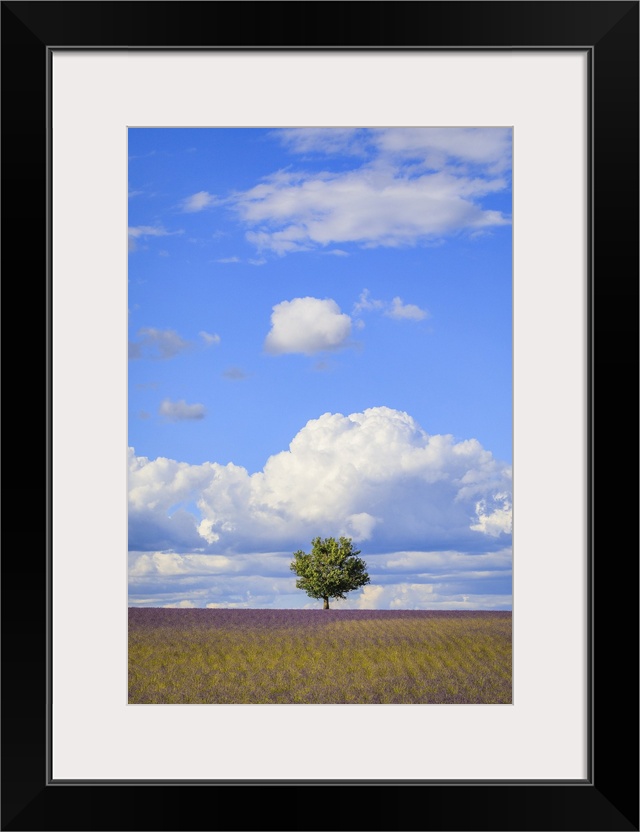 <p>France, Provence, Valensole Plateau. Field of lavender and tree. Credit: Jim Nilsen</p>