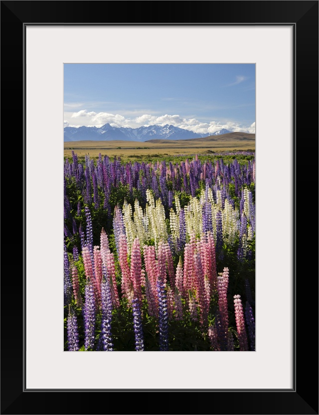 <p>Field of lupins with Southern Alps behind, near Lake Tekapo, Canterbury region, South Island, New Zealand, Pacific</p>