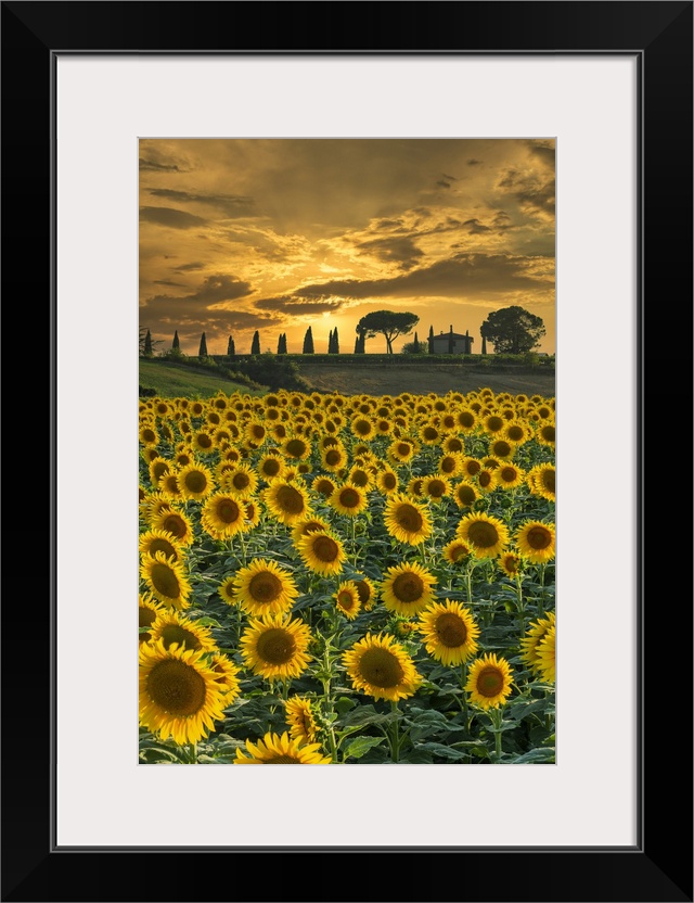 <p>Field of Sunflowers at Sunset, near Buonconvento, Tuscany, Italy, Europe.</p>