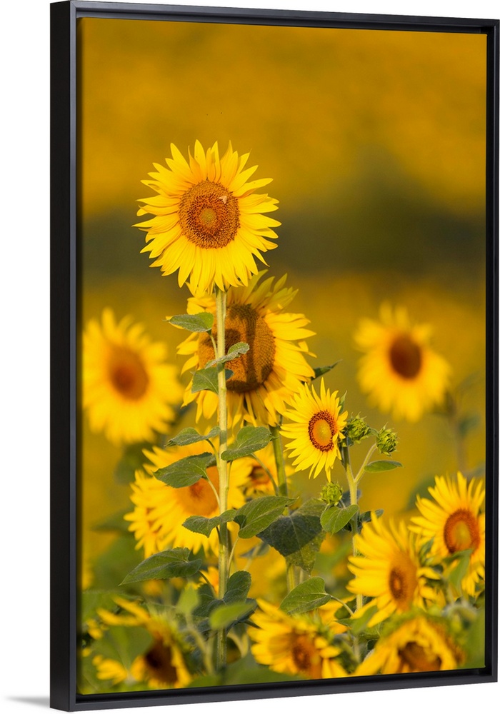 <p>Fields of sunflowers in the early morning sunshine around the town of Cetona,province of Siena,Tuscany,Italy</p>