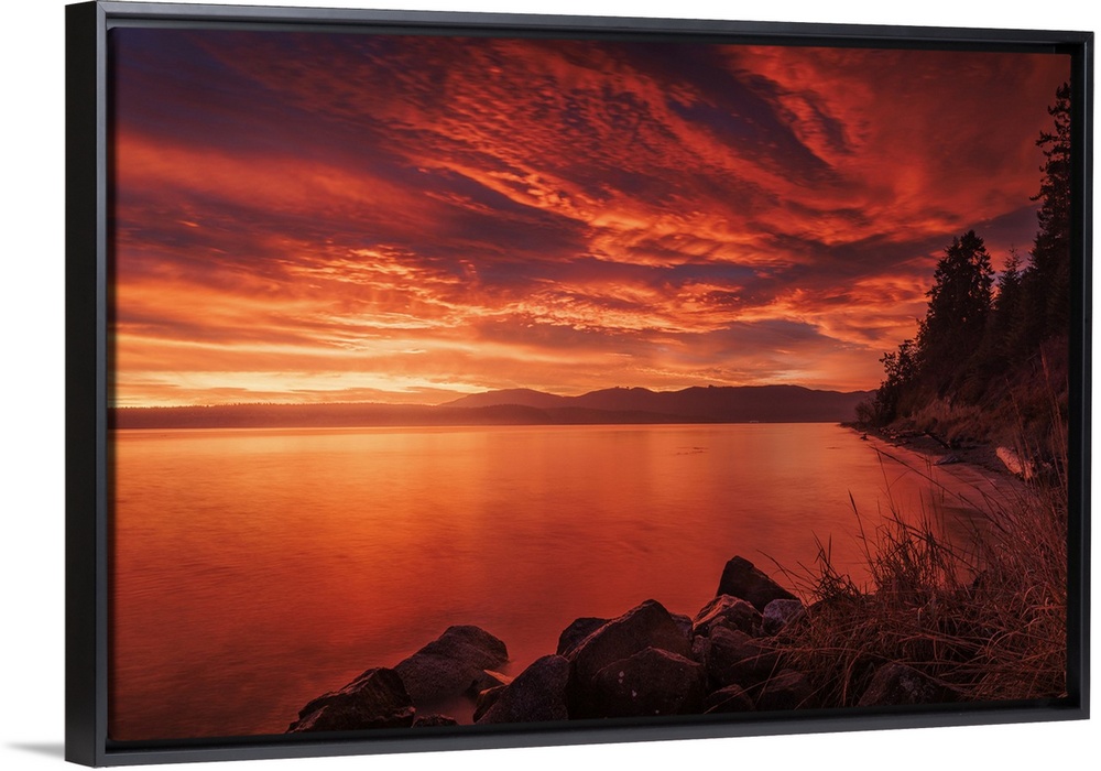 <p>A stunning fiery sky before sunrise at Port Williams Beach in Washington State.</p>