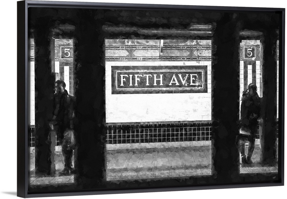 <p>Black and white photograph with a painterly effect of Fifth Avenue station, NYC.</p>
