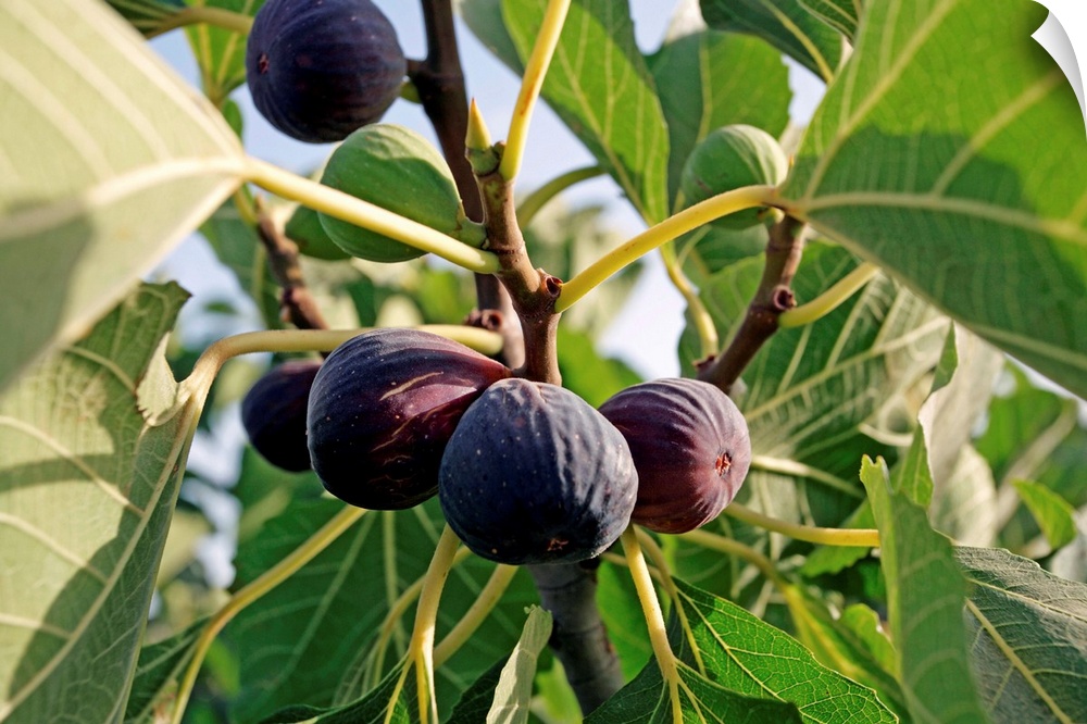 <p>Figs (Ficus carica) on a fig tree. Photographed in Alhaudin el Grande, Malaga, Spain, in August.</p>