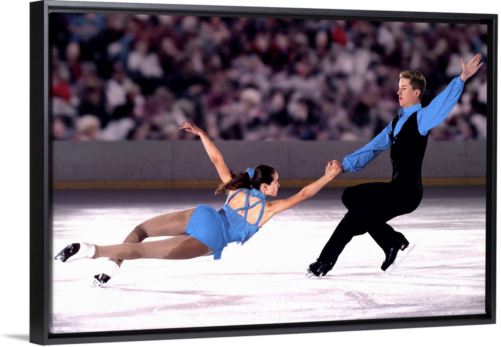 <p>Figure skating pair performing in front of crowd (Digital Composite)</p>
