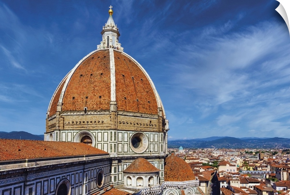 <p>Florence, Tuscany, Italy. Filippo Brunelleschi's Dome of the Duomo, or cathedral. Basilica di Santa Maria del Fiore. The historic centre of Florence is a UNESCO World Heritage Site.</p>