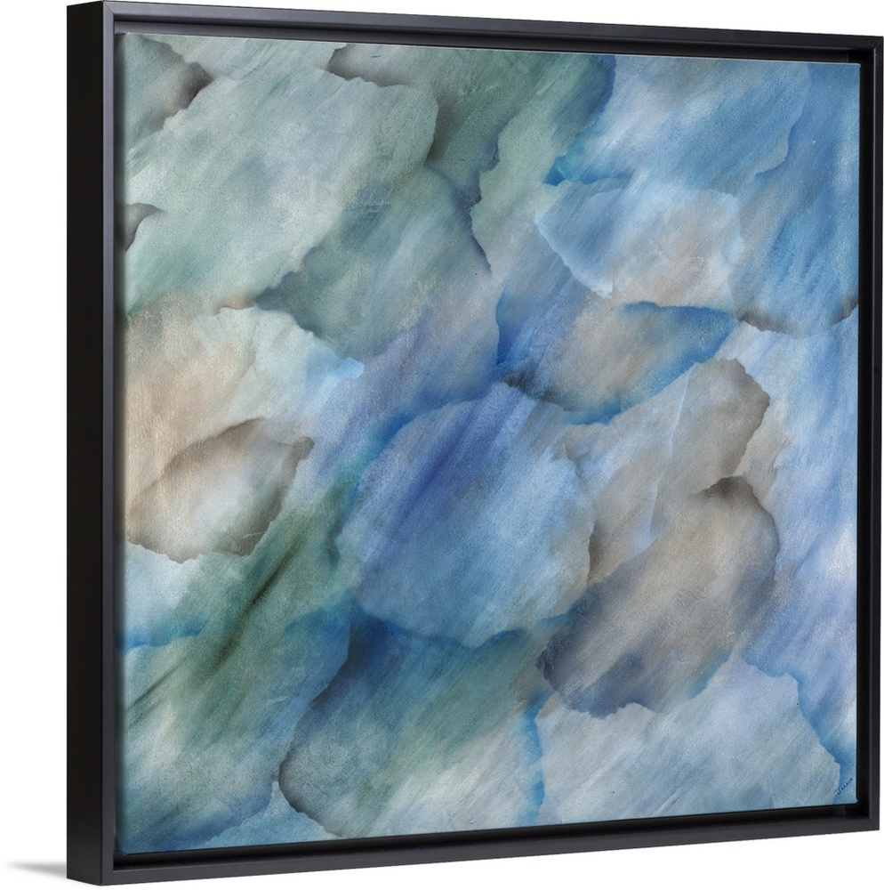 <p>Square contemporary abstract painting with cool toned rock shaped designs overlapping and blending together.</p>
