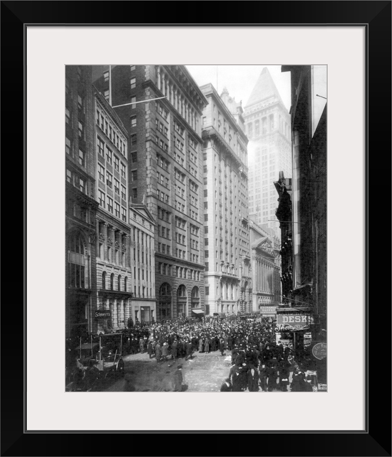 <p>Crowd of men involved in curb exchange trading on Broad Street, New York City. Photograph, c1920.</p>