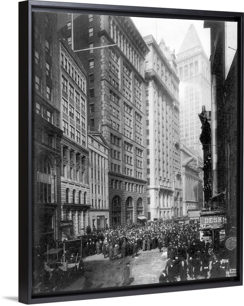 <p>Crowd of men involved in curb exchange trading on Broad Street, New York City. Photograph, c1920.</p>