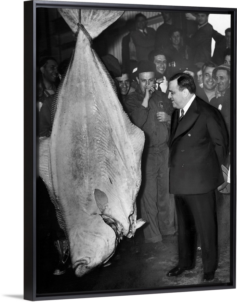 <p>(1882-1947). American lawyer and politician, mayor of New York City, 1934-45. With a 300-pound halibut at Fulton Fish Market in NewYork City. Photograph, 1939.</p>