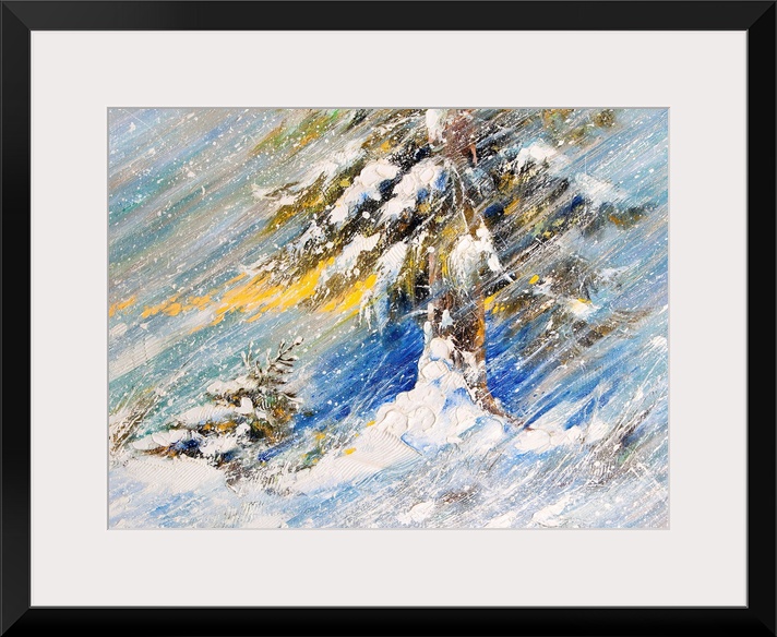 <p>Fir-tree in snow. A picture drawn by oil</p>