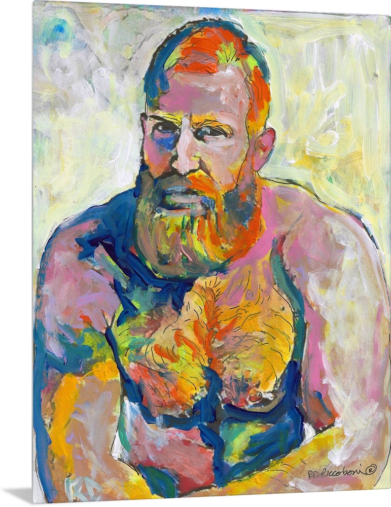 <p>Fire Island Van Gogh by RD Riccoboni. Sexy muscle Ginger Bear painting of a muscular bearded man surrounded by splashes and pops of color. Painting by RD Riccoboni.</p>