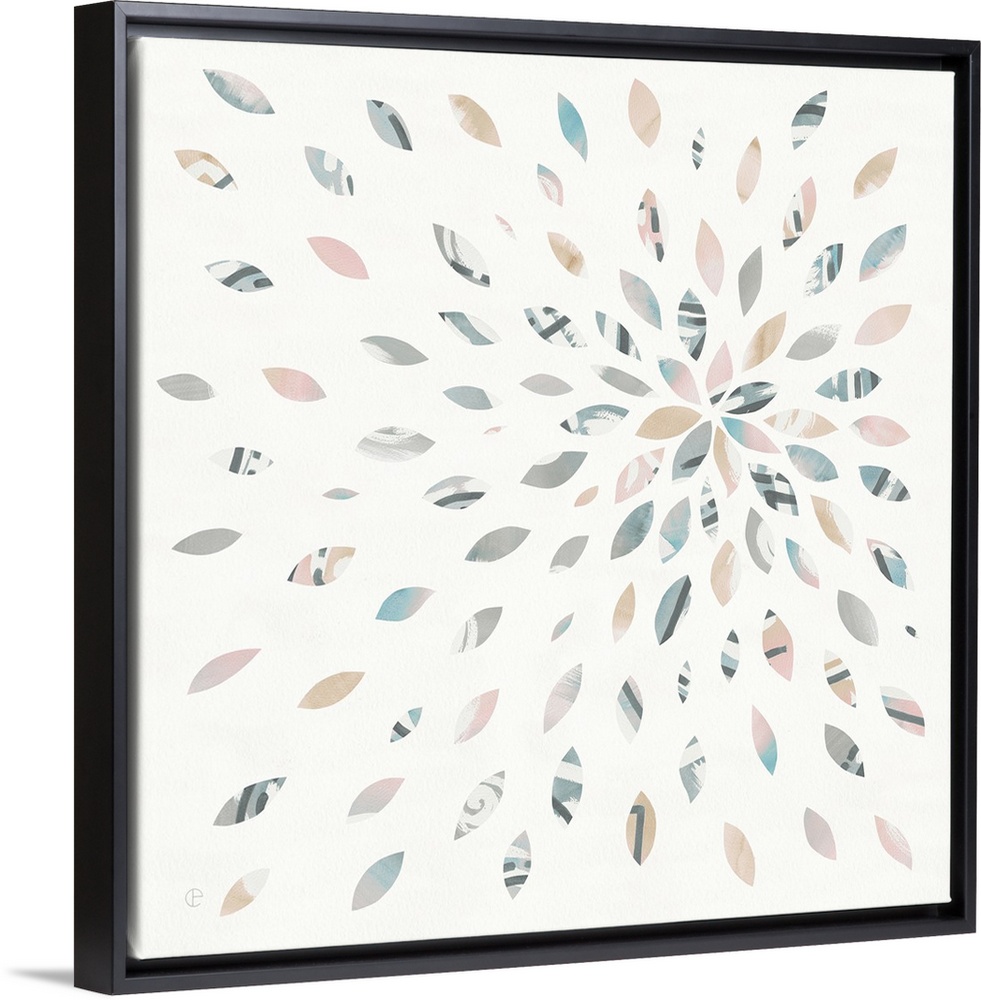 <p>Square watercolor painting with oblong shaped pieces creating a starburst firework design.</p>