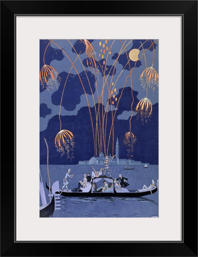Art Traditional George Barbier Blue Wall Art Classic Art Modern Art Art Deco Classic Art by Subject Figurative Fireworks Illustrations Painting People