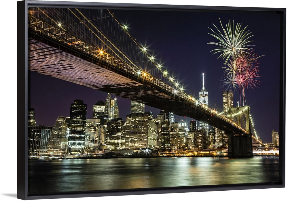 <p>Fireworks over the Brooklyn Bridge in New York City</p>