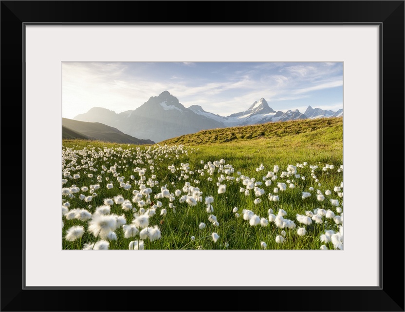 <p>First light of dawn illuminates the eriophores at Bachalpsee, Grindelwald, Berner Oberland, Switzerland</p>