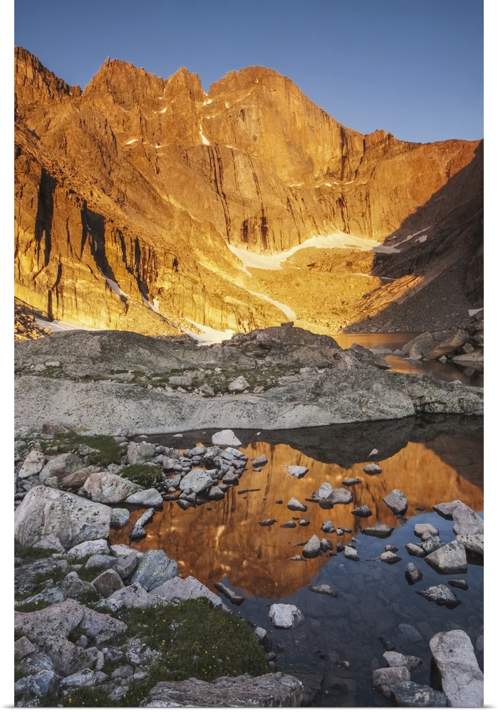 <p>First Light On Long's Peak At Chasm Lake In Rocky Mountain National Park, Colorado</p>