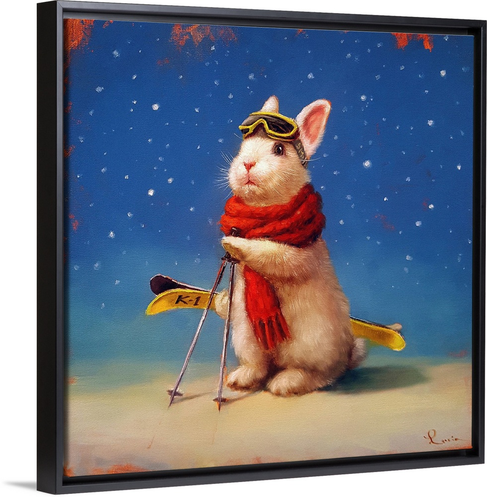 Art Four Seasons Winter Lucia Heffernan Painting Sports Skiing Wildlife Rabbit