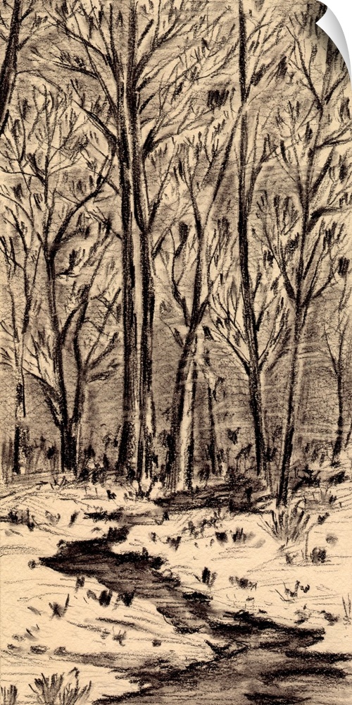Art Rustic Black and White Wall Art Cabin Wall Art The Botanist Decorative Art Drawing Landscapes River, Creek and Stream Trees Forest Melissa Wang
