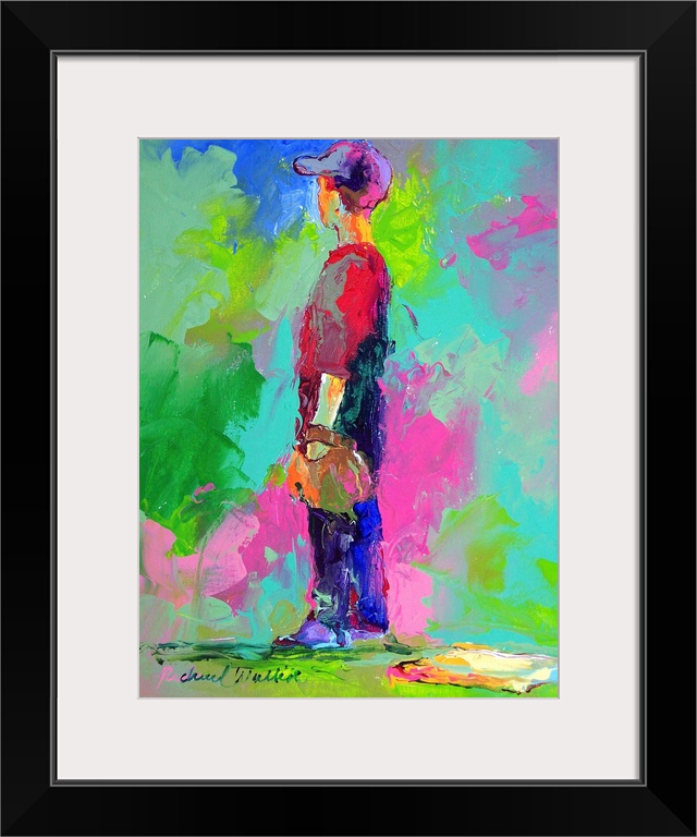 <p>Contemporary vibrant colorful painting of a boy waiting at first base.</p>