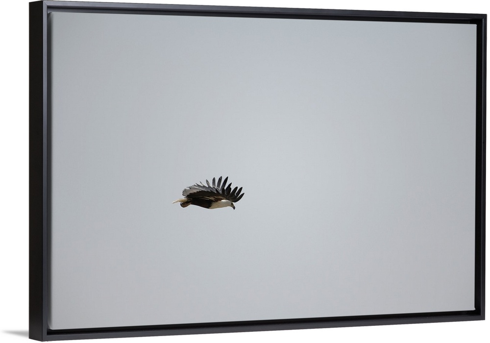 <p>A fish eagle with wings extended flying in Serengeti National Reserve, Tanzania, Africa.</p>