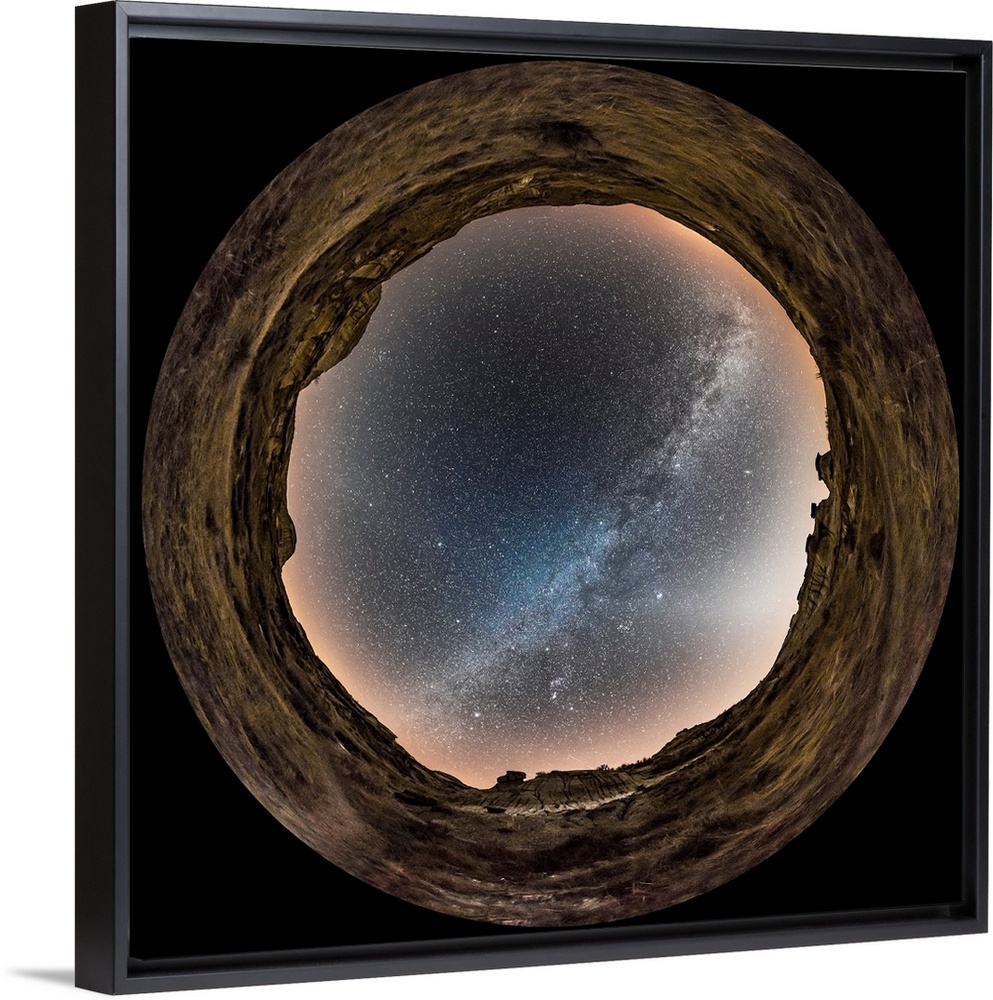 <p>Fish-eye lens view of the Milky Way at Dinosaur Provincial Park in Alberta, Canada.</p>